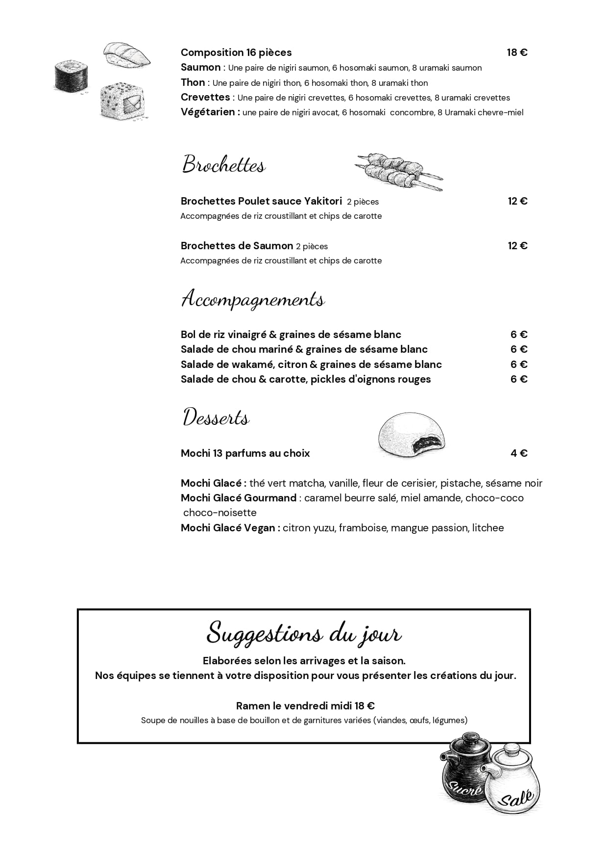 Notre carte évolue au fil des saisons et se décline en plusieurs formules selon le moment de la semaine.